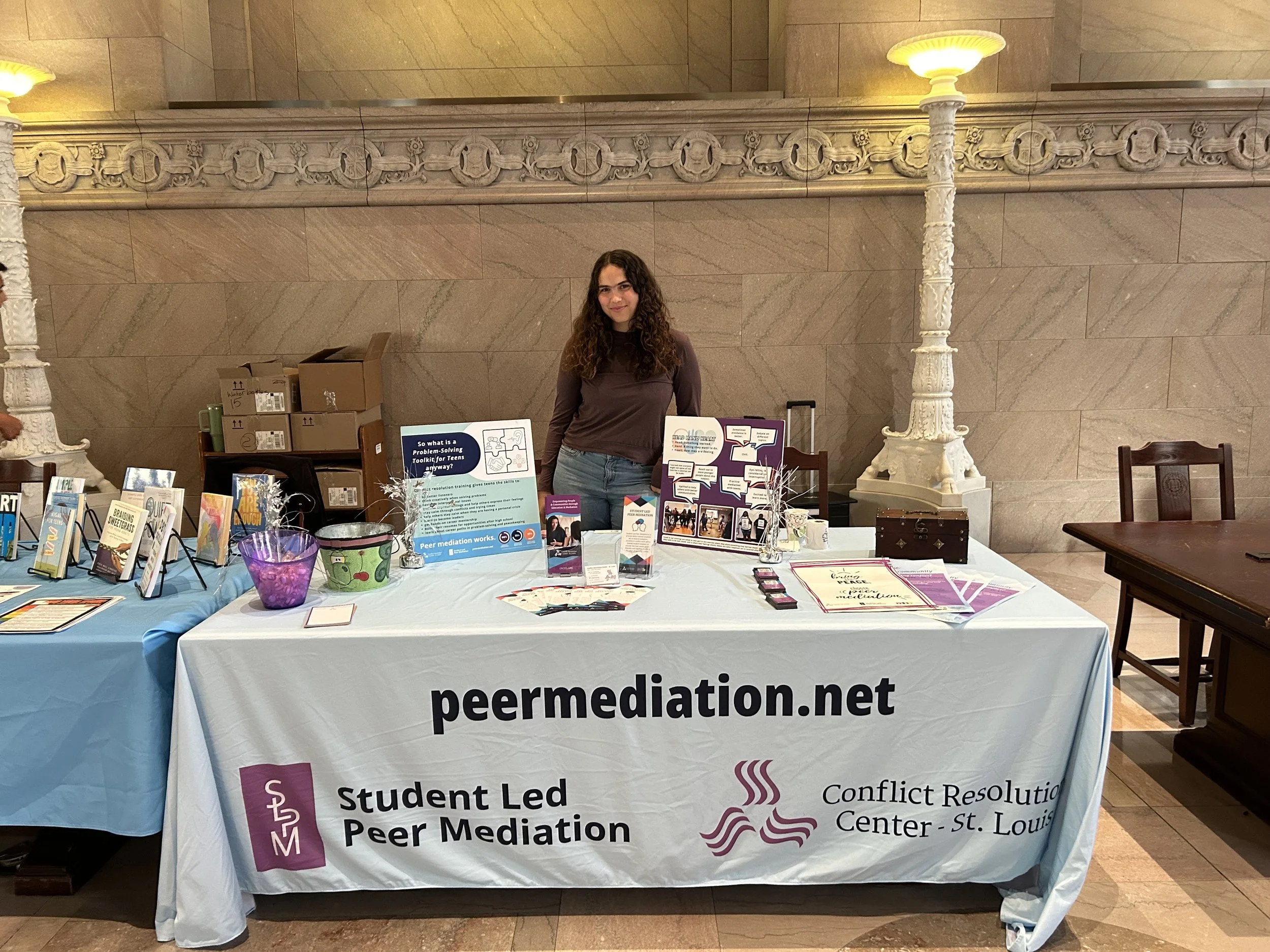 CRCSTL joined St. Louis Public Library's Teen Leadership Council for an afternoon of workshops on movement, relaxation, writing, music and crafts! CRCSTL Outreach Intern Ella Sophia was on hand to talk about our Student-Led Peer Mediation (SLPM) youth programming. (See more at peermediation.net)